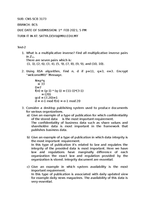 Test 2 1106183005 Sivaranjini Sub Cns Scb 3173 Branch Bcs Due Date Of Submission 1st Feb 2021 Studocu
