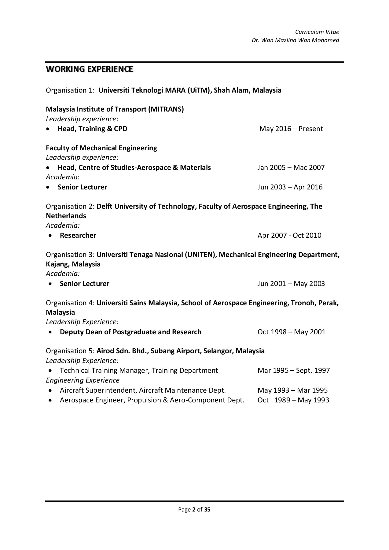 Dr Wan Mazlina Wan Mohamed Cv Flip Ebook Pages 1 35 Anyflip Anyflip