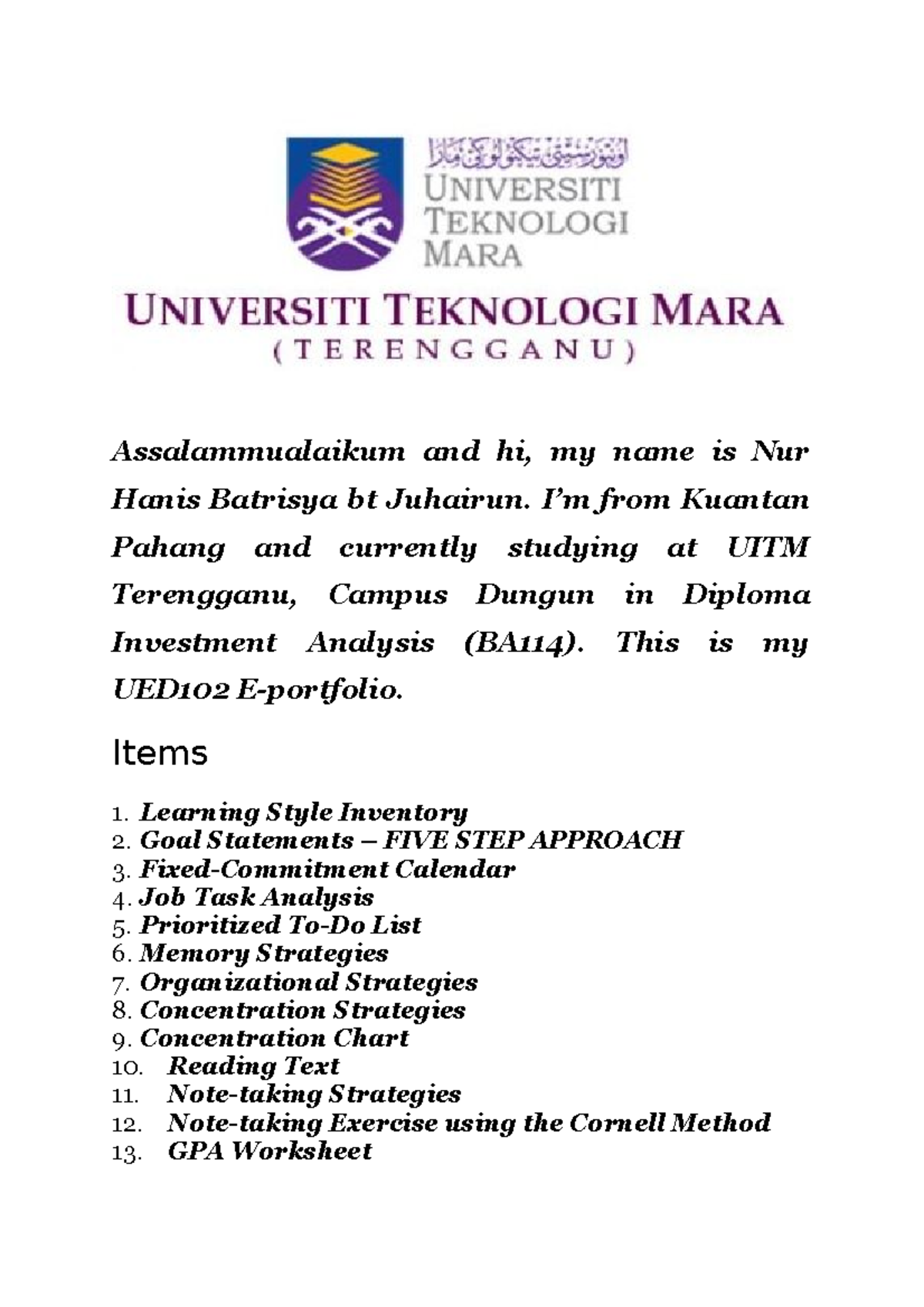 Ued Assigment Complete Assalammualaikum And Hi My Name Is Nur Hanis Batrisya Bt Juhairun I M Studocu