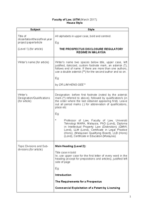 House Style References Faculty Of Law Uitm March 2017 House Style Subject Style Title Of Studocu