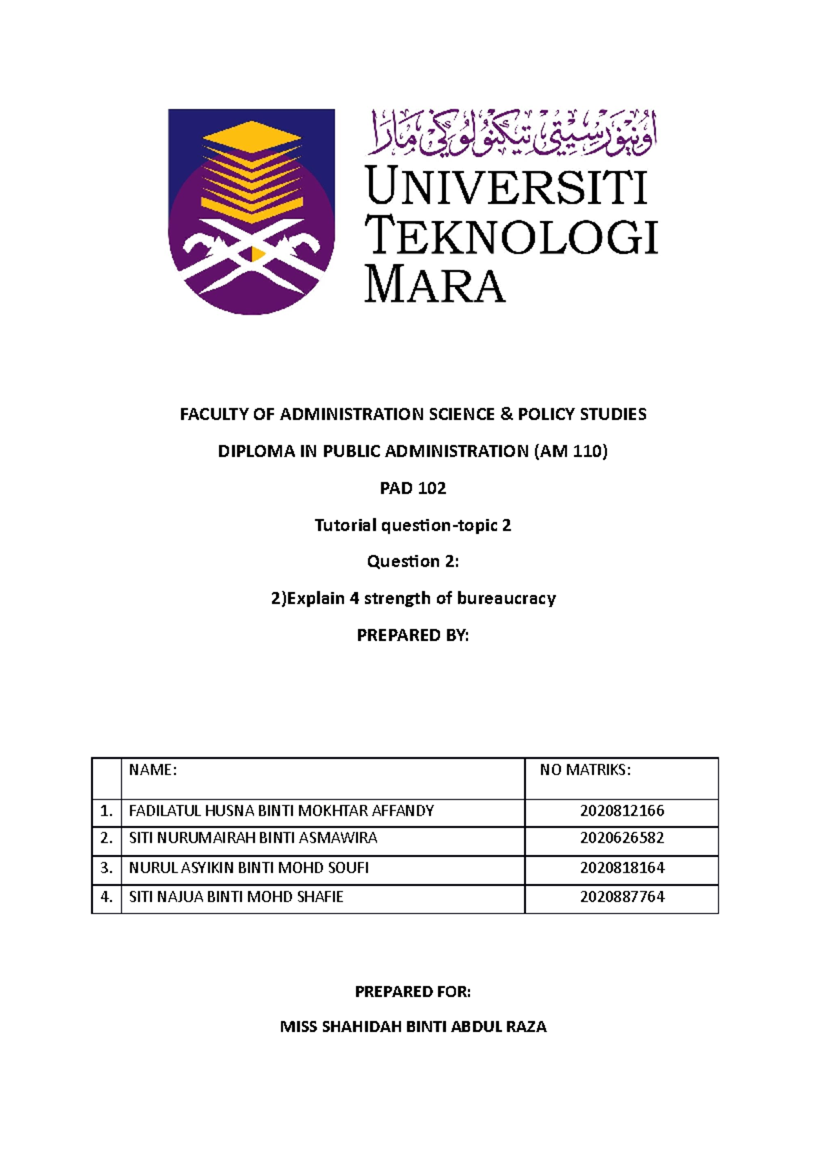 Tutorial Question Pad102 Topik 2 Faculty Of Administration Science Amp Policy Studies Diploma In Studocu